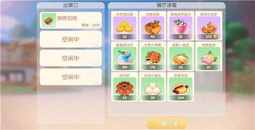 2、餐厅即使不营业时把菜摆在出口,在下线时也会有收入! 我才发现呜呜呜,浆果烧饼利润超高。