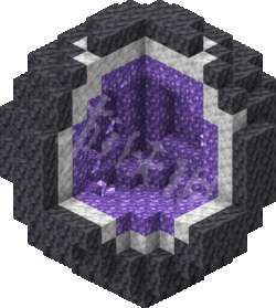 紫晶洞由三层组成,外层是平滑玄武岩,中层是方解石,内层是中空的紫水晶块层,其间会随机生成紫水晶母岩。紫水晶簇和紫晶芽在结构中的紫水晶母岩上生成。紫晶洞有95%的几率产生裂缝,露出内部。洞穴不能切入紫晶洞,所以通常会被紫晶洞阻塞,除非裂缝与洞穴相交。