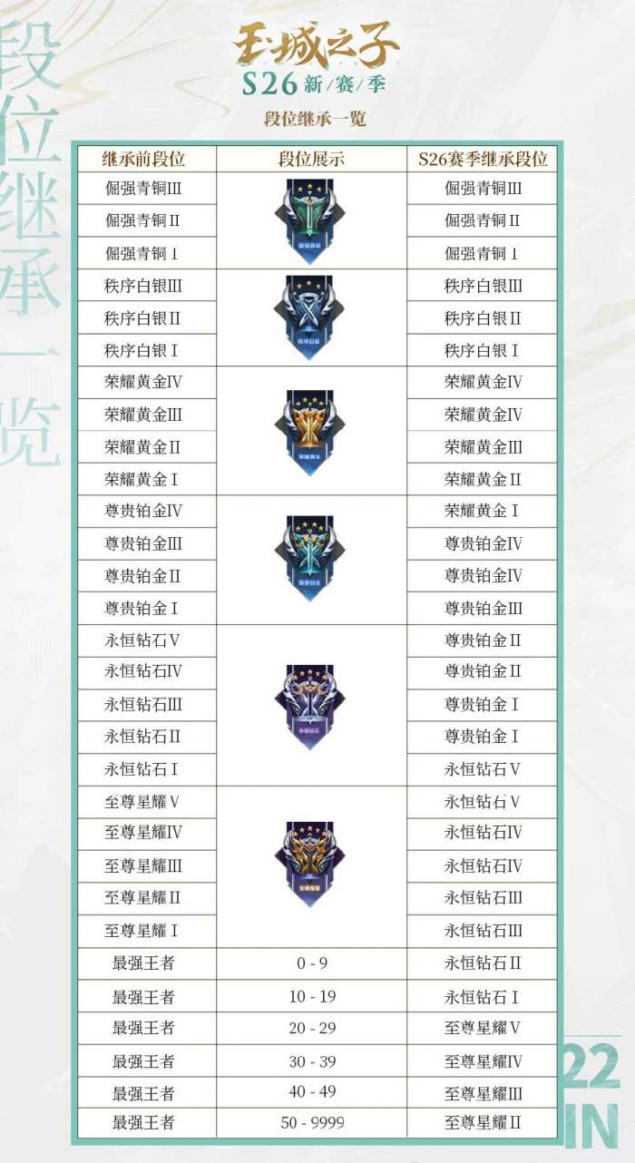以上就是小编为大家带来的王者荣耀s26赛季继承段位图,小伙伴们了解了吗?还想要了解更多关于王者荣耀的内容,那就请继续关注王者荣耀专区吧!
