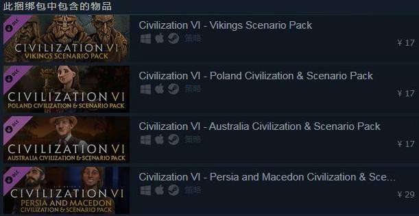 2.白金版包括完整的游戏本体,25周年数字音轨,以及游戏发售后四个DLC扩展包的内容,以更优惠的套装价格获得新的地图,战役,文明以及领袖。