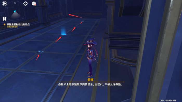 过完剧情后,触摸旁边的占卜球,进入副本后往右,跟随地上的星光指引走,直到遇上地上的星星,改为跟随星星走,注意不要跟丢。
