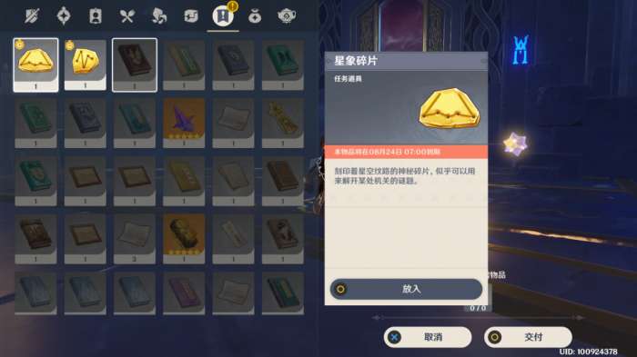 回到星星位置的放置器,上方放入图示碎片