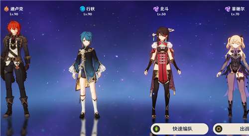 2、炎魔武装队:迪卢克+行秋+北斗+菲谢尔