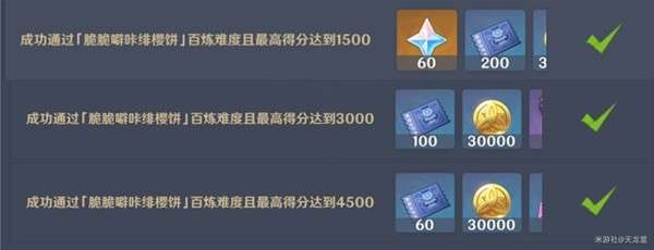 2、成功通过[脆脆噼咔绯樱饼]百炼难度且最高得分达到3000