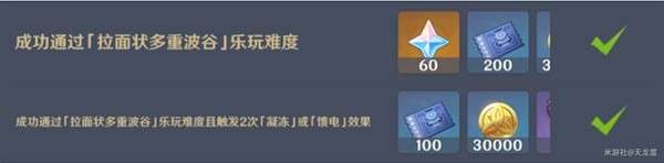 2、成功通过[拉面状多重波谷]]乐玩难度且触发2次[凝冻]或[馈电]效果。