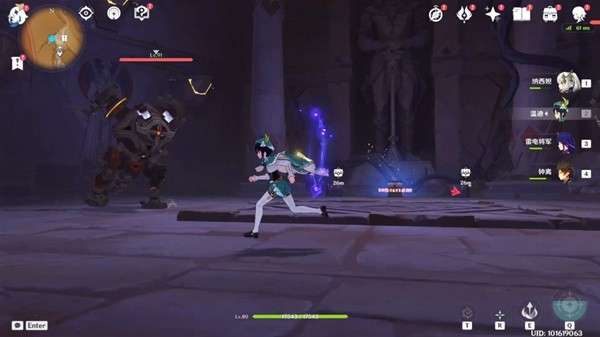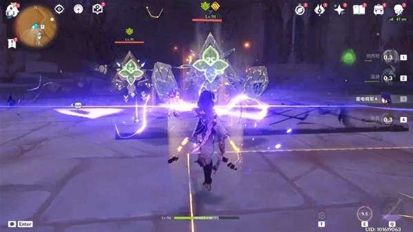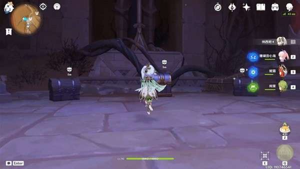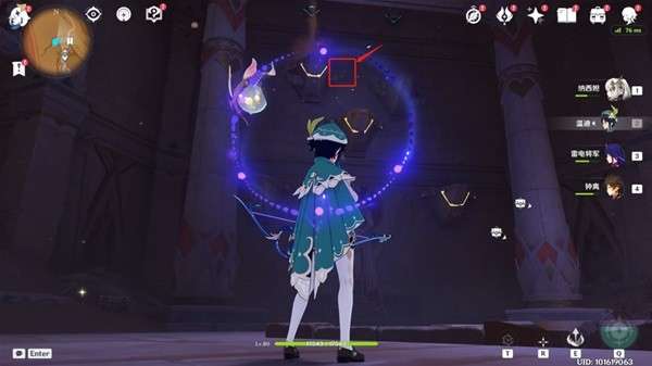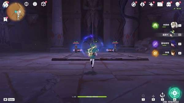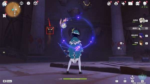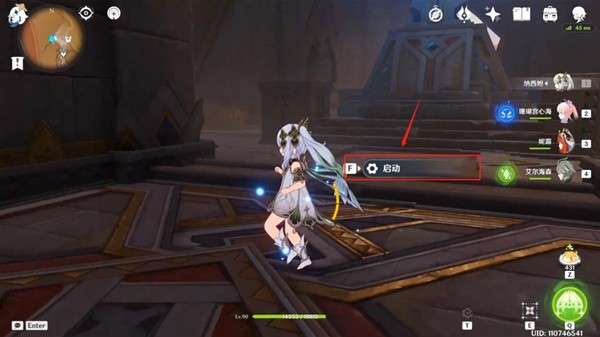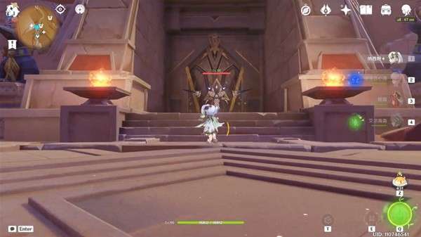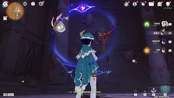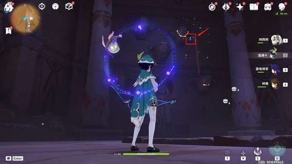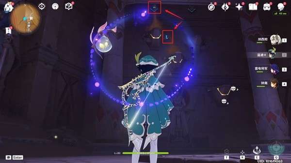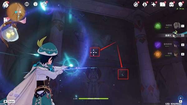 切换出弓箭角色。为了让小伙伴们保持统一,我们先用弓箭角色的蓄力攻击将沙池上的蓝色光点熄灭。