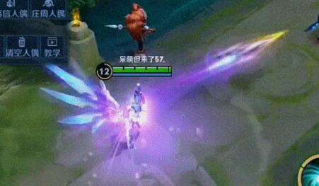 三技能特效同样加入了翅膀出现的效果,但是三技能是融合的双翼,落地后使用了光束从上而下的特效,并伴有科技光环。