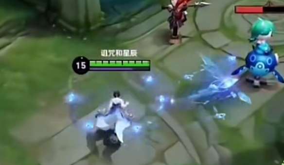 1、她的一技能(位移)释放后将化成闪闪发光的宝石图样向指定目标直线移动。