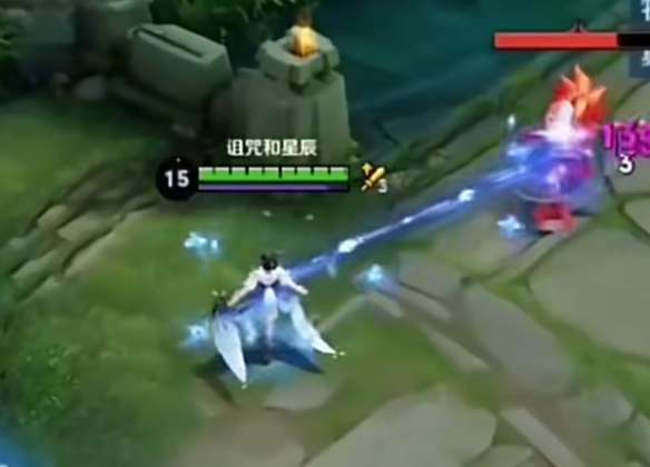 2、芈月的二技能可以向前甩出一条蓝色光线,在该光线上附带一些珠宝砖石粒子特效,对敌持续伤害的效果也显得特别高贵。