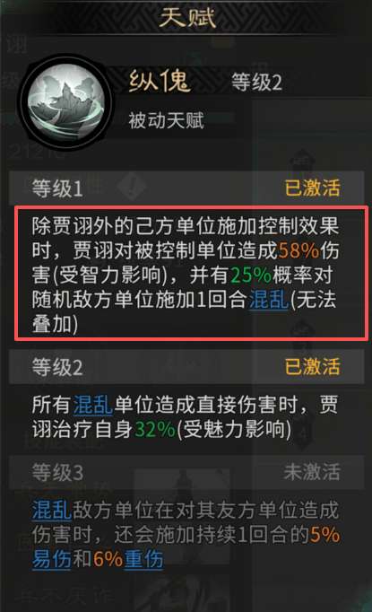 贾诩有着极强的针对性。当张角被其他角色施加“技穷”时,贾诩的天赋可额外对其追加一段伤害,并有概率同步施加“混乱”效果,形成双重控制与反制。