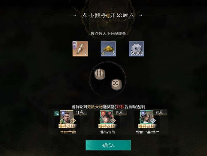 奖励结算时,玩家将根据掷骰子点数的高低顺序优先选择奖励。建议排序为:宝物图纸 > 宝物锻造尘 > 银币。