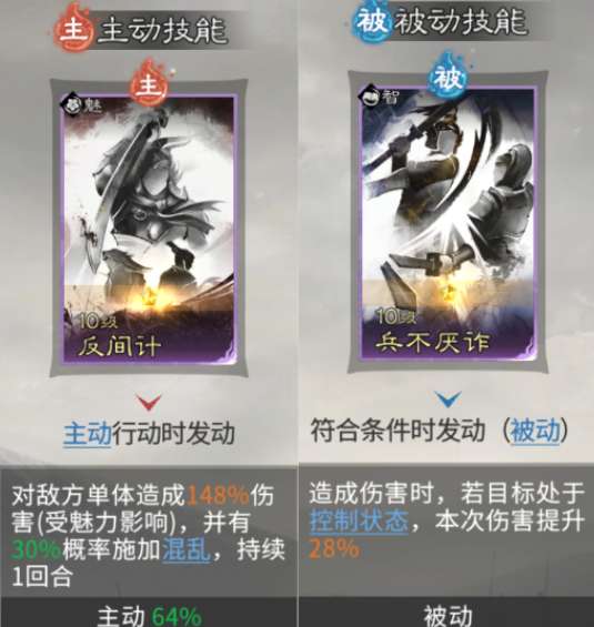 主动技能携带上【反间计】,可使张角陷入混乱,有概率攻击其自身,实现“以彼之道,还施彼身”。