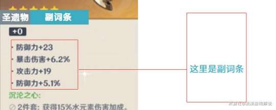 圣遗物下半图,带有黑色标点的,就是副词条了。