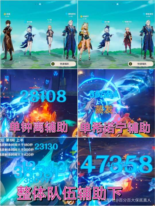 钟离减抗(20%)后伤害为28108,比希诺宁的36%减抗略低一些;而放大到整个队伍中,差距会更小,总伤害38581,较47358低了大概23%左右。但带来了更高的容错率和更低的打造成本,可以说两支队伍各有优势吧。