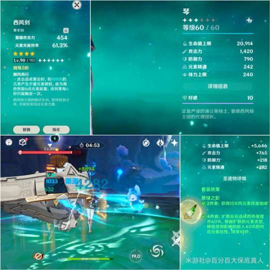 1400攻击面板、七级技能的琴,大招可以全体瞬间回血8894,后续每秒回血900,基本能吃满芙宁娜被动增伤。