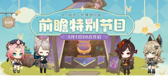 《原神》4.5版本「铓锋锦间裁」前瞻特别节目将于3月1日(周五)晚20:00正式开启。本次特别节目将在B站直播间、斗鱼直播间、虎牙直播间、快手直播间、抖音直播间等直播间同步开播。本次特别节目将为大家带来4.5版本的更新内容,直播间内还有兑换码等福利“掉落”。