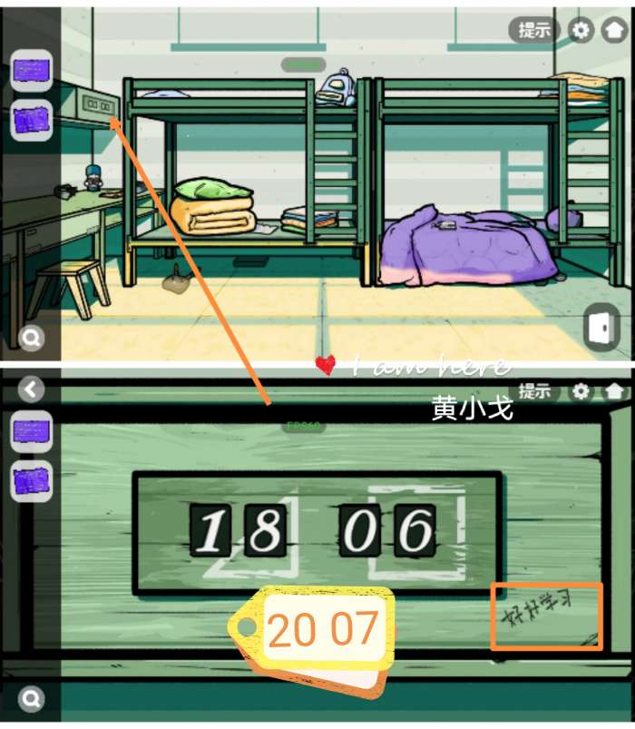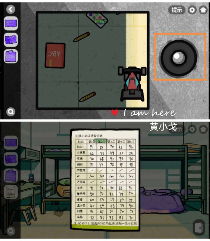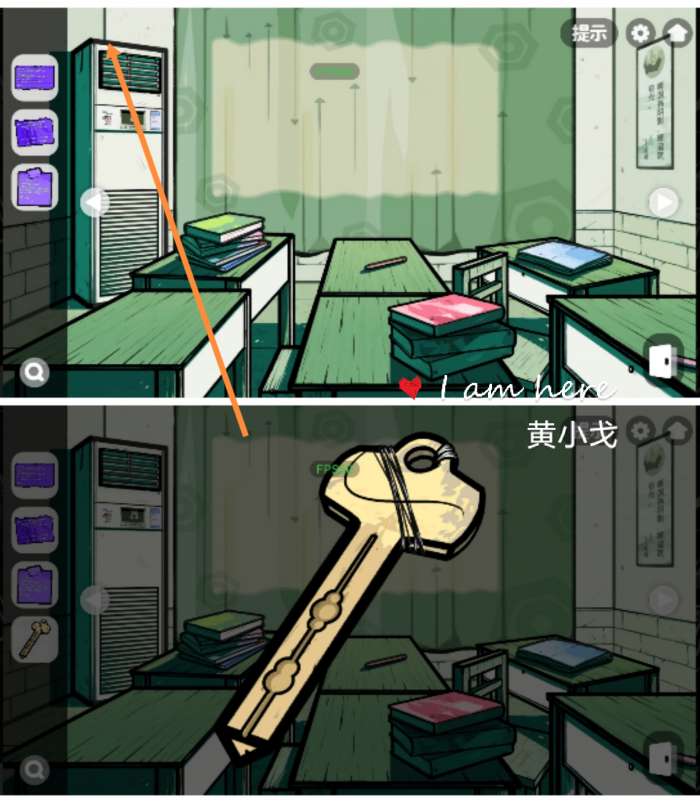 1.(高年级教室-空调)在桌子上获得【一张纸条】(调整长廊上的开关后才能获得)