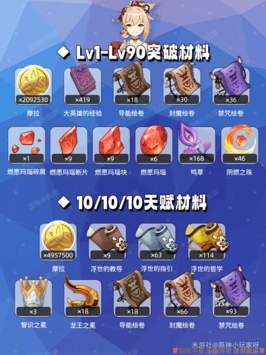 1️⃣L1-L90级突破材料
