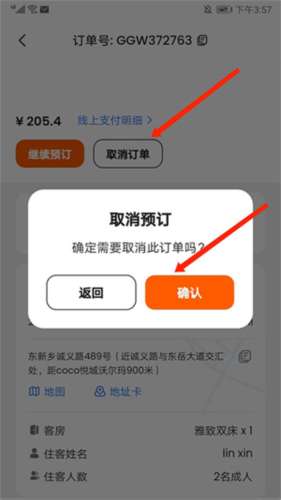 4、先选择“取消订单”,然后再选择“确定”即可取消酒店了。