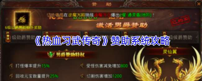 以上就是小编带来的《热血习武传奇》赞助系统攻略,更多相关攻略,请关注pk游戏网。