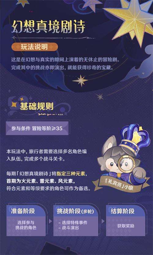 4、每期的幻想真境剧诗的开幕角色会获得幻境祝福,该祝福在深境螺旋等剧场外的冒险中也会生效;