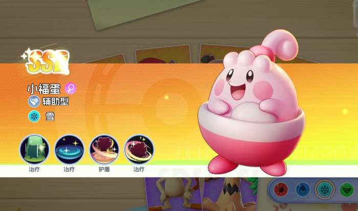 超强的治疗能力是小福蛋的特性,能极大地保证队伍的生存,而且它的大招除了能快速拉高己方低血宝可梦的生命外,还可让该宝可梦回复怒气,即便刚用完大招也能在短时间内再开启一次。41级后更是可通过对己方全体宝可梦施加护盾,进一步保障它们的生存,护盾还能提升宝可梦们10%的攻防。