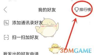 3、接下来进入到我的好友页面里,在右上方会看到有一个“排行榜”,在上面点击进入。