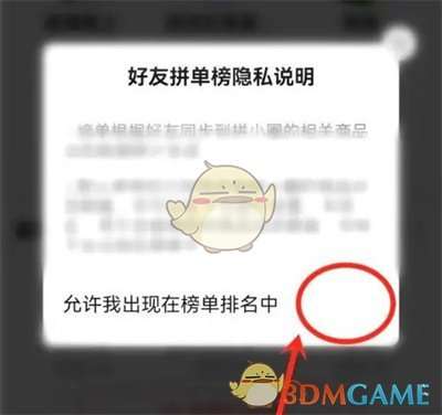 5、最后在页面里弹出的窗口中“允许我出现在榜单排名中”的后面点击开关按钮,把它设置为关闭状态即可。