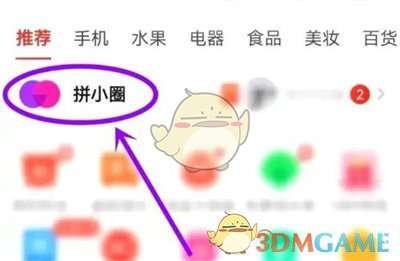 1、打开手机拼多多进入界面后,在首页面的上方点击“拼小圈”功能打开。