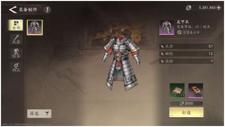 装备锻造界面可以自由打造自己所需装备,材料可通过某些特定主线首通来获得