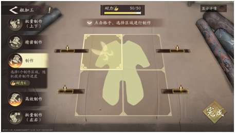 锻造需要手动进行,可以选择不同的制作方式,不同方式消耗的体力不同,装备锻造进度也不同,当右侧装备进度条都在框选范围内时,锻造效果最佳