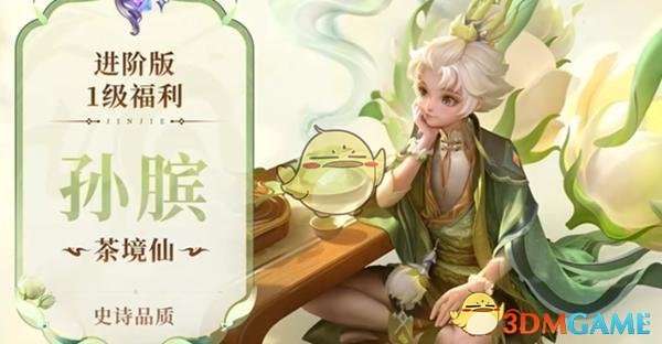 1、孙膑的茶镜仙皮肤为史诗品质,玩家只需进阶1级战令,即可解锁该皮肤。