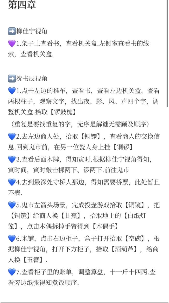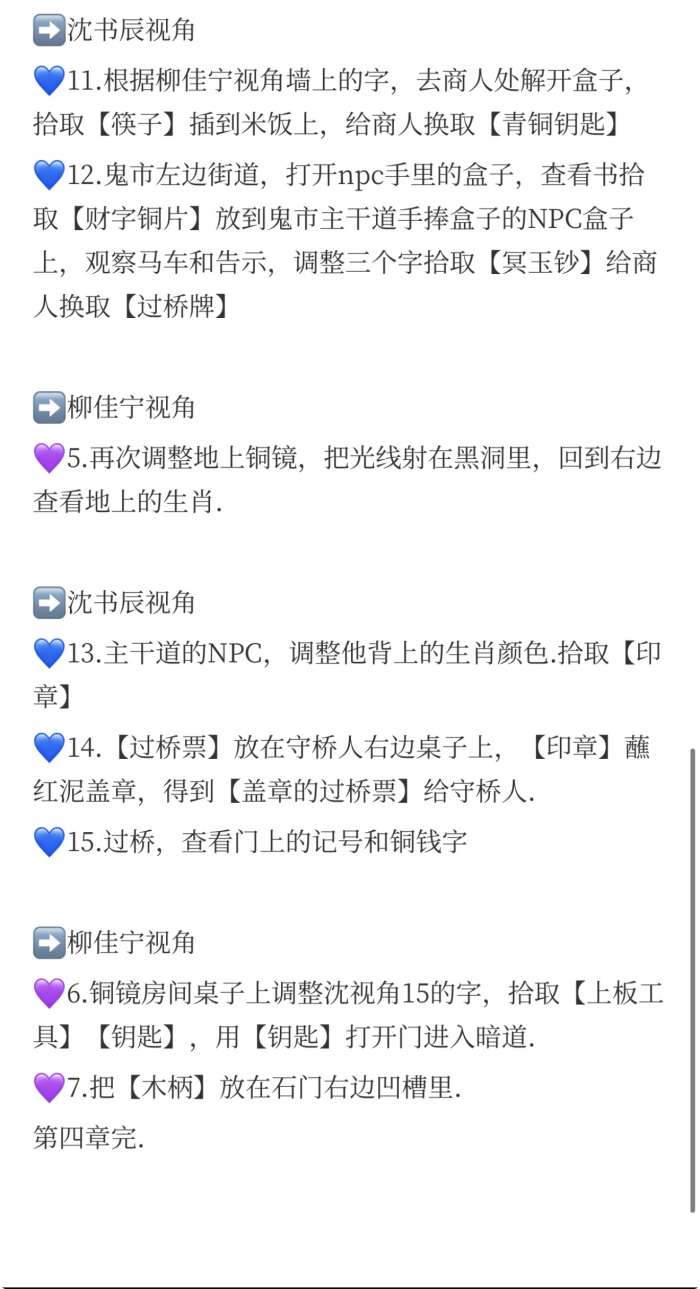 软件提交 专题合集 热门手游《缠重山2冥玉钞》第四章通关攻略来了:第四章需双视角切换解谜。沈书辰在鬼市通过投壶、交易获取过桥票,并依据柳佳宁处的线索“逢中玉代”解开商人盒子。柳佳宁则通过调整镜面折射破解机关,双方协作完成生肖颜色对照与过桥手续,最终开启暗道。