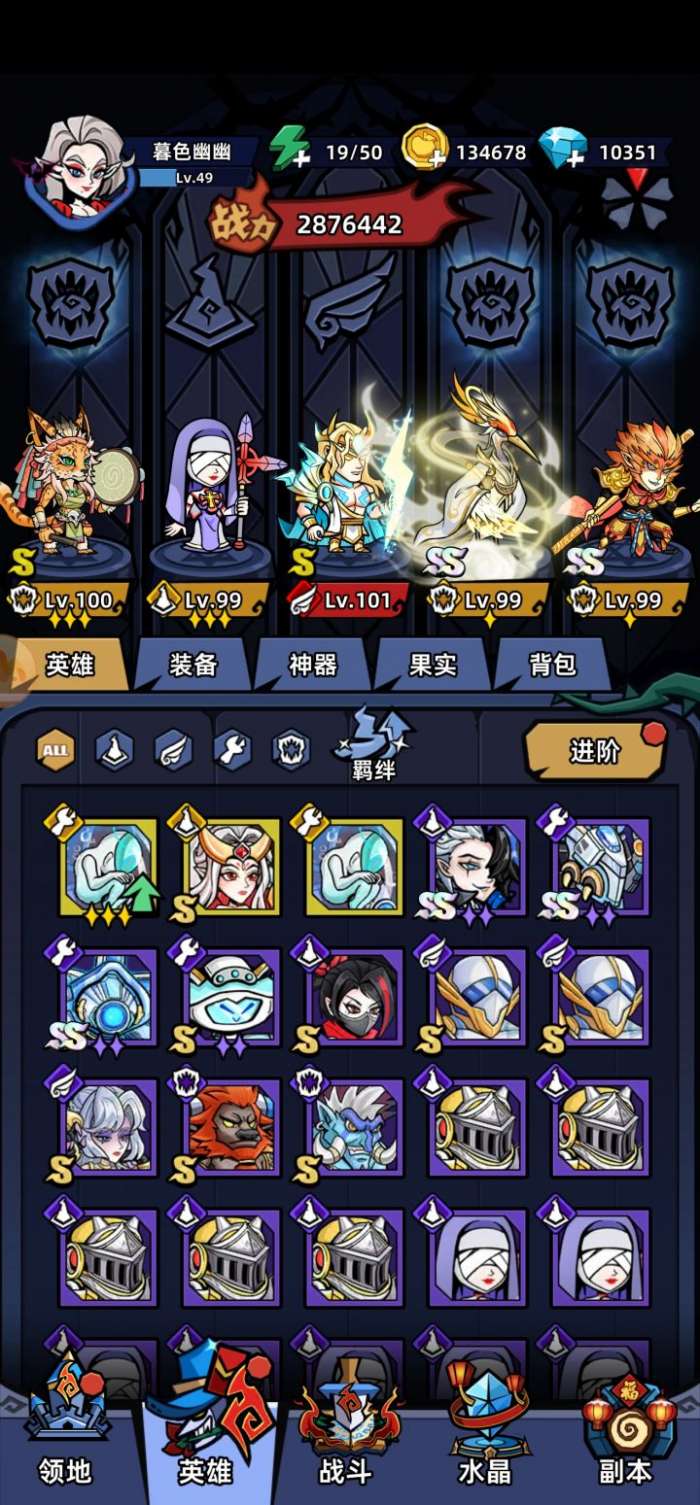 1、英雄等级:基础养成,需要注意,英雄的品质会决定等级上限,紫色2星满级是75,金色是100,金色1星是125,如果金色1星125级,换成紫色2星,那么会返还材料,使等级回到75。