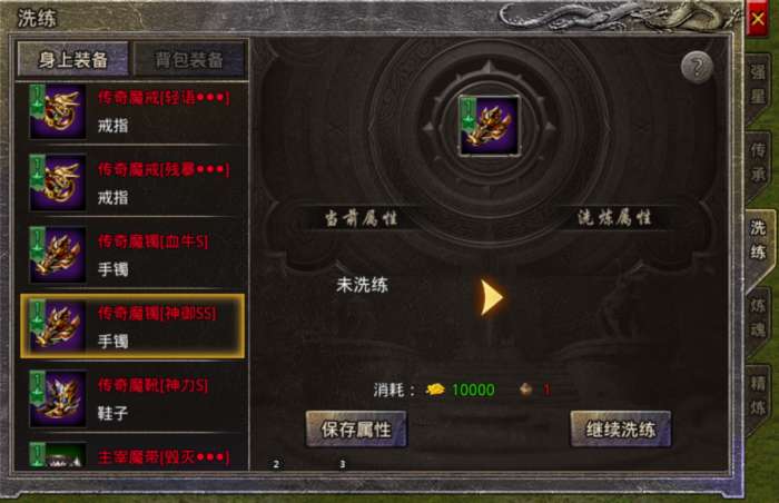 3、洗练仅能对火龙及以上品质装备进行,且需要消耗对应装备的洗练石和金币。