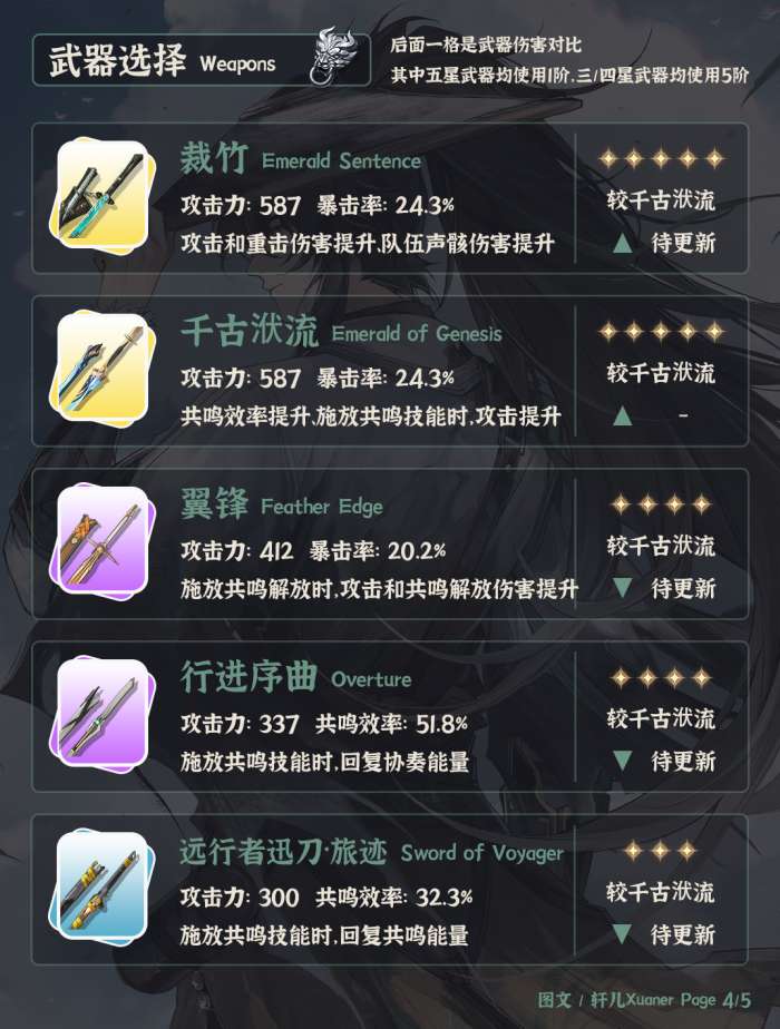 ④ 仇远武器首选专武裁竹,其余武器可以考虑加共鸣效率的武器。