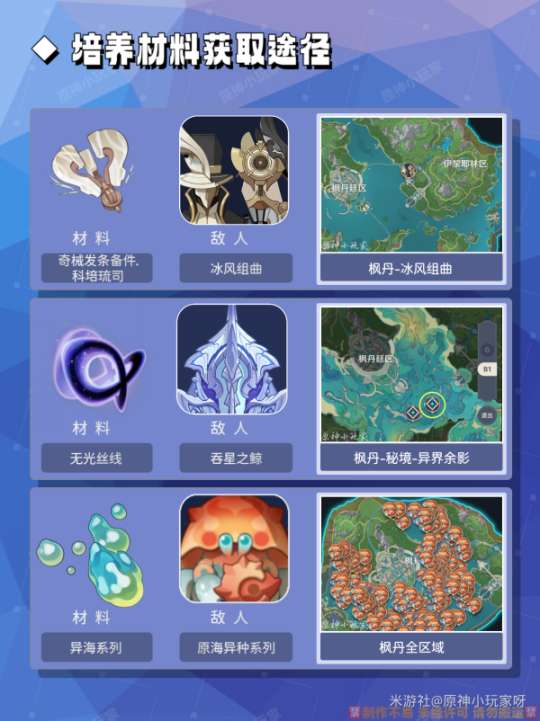 5️⃣培养材料采集路线(详见图⑤-图⑧)