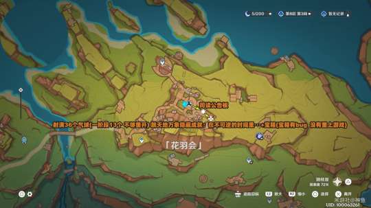 首先来到下图六角星标记处,阅读公告板。然后前往四叶草标记处,记得到圆盘前跳上去,否则的话容易掉下来。和npc对话之后,开启射气球挑战,共36个。一阶段13个,强制转视角啊之后代表一阶段结束,如果未射满记得重新开始。一阶段最好失误少一点,二阶段共23个,容错率很高,可以失误很多次。完成后跳天地万象隐藏成就「在不可逆的时间里···」+宝箱,宝箱如果不跳的话就证明遇到bug了,重上游戏即可出现。