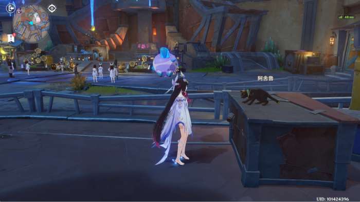 ⑥小机器人实验。朝合成台方向前进,在坡道旁边有一个九宫格显像机器人实验,可以交互玩小游戏。通关3次会给1万摩拉。