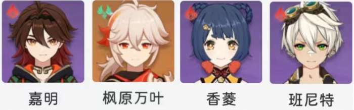 这个队顾名思义就是纯打火伤的队伍,攻击力加成与增伤加成都十分爆表,充能也无压力,伤害可观,且整个队伍对手法要求低,那里亮了点哪里,只要不是在针对火元素的环境中,其他都毫无压力,就是对香菱和嘉明的练度有一定要求。