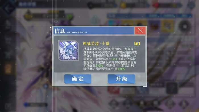 她的二技能则是一个偏防守向的技能,从战斗开始夜刀神十香每30秒都能获得一个可抵挡8颗子弹的护盾,护盾存续时间内她不会受到任何伤害,且在存续时间爆开后,还能为夜刀神十香增加最高15%的机动,令她能更好地规避护盾消失期间的攻击。最重要的是,只要夜刀神十香存在场上,旗舰便能一直享受伤害最高降低10%的被动,即便敌人有跨射和较出色的空袭能力,也无法轻易越过前排船将旗舰击毁,全队也不会因旗舰被击毁而被强制判定为作战失败。