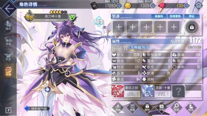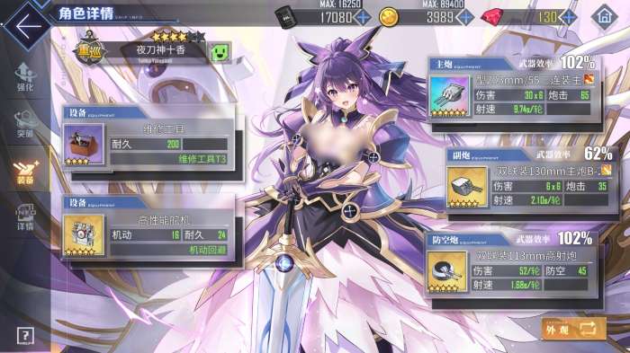 此外,夜刀神十香的专属兵装鏖杀公还能令她永久获得伤害降低8%的效果,并且每当她击败一艘敌船后,还能为自己增加8%的暴击,此效果最高能叠加三层,一旦获得就能持续到战斗结束,中途不会失去任何已叠加的层数。而在舰娘装备的搭配上,常规的彩重巡炮夜刀神十香都可携带,没有的话给她装欧根炮或巴尔的摩炮也很不错,副炮栏用每月能兑换一次的B13即可,也可用金128,防空炮则选最泛用的金113,两个设备栏则以传统重巡配装为主,金舵机加维修工具的组合能帮助夜刀神十香应对大部分作战环境。