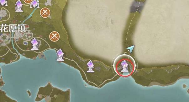 1、传送到祈愿森林左下的心愿通行许可处,位置如下图所示: