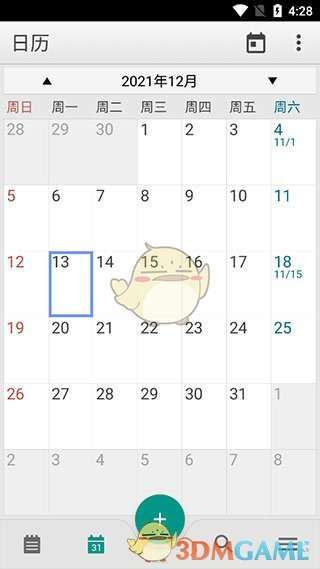 5、如果设定了提醒的话,点击底栏中的日历,也可以看到在相对应日期中,由对应颜色的色块。