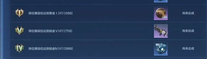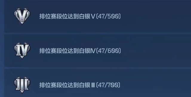 等升到白银段位以后,奖励就开始变得丰富一些了。白银同样有五个小段位需要去爬,全部打通关之后,总共能够收获一千六百五十GP点数,荣誉点还是保持在五十点这个数量。可以看出来,白银阶段给的GP点数,相比青铜要多出不少,这也算是对玩家实力提升的一种认可。