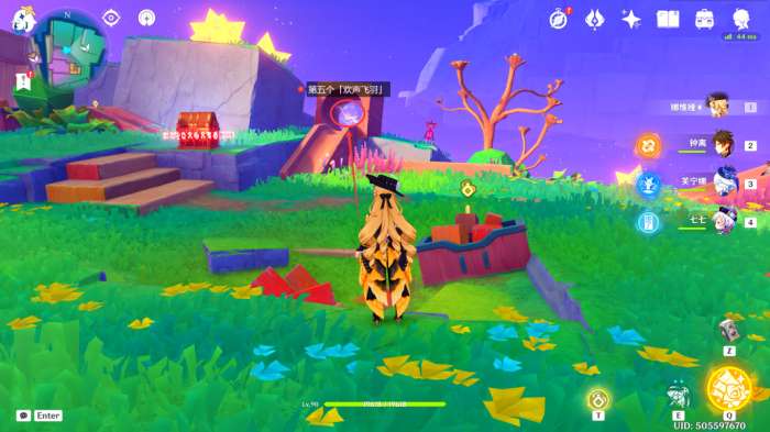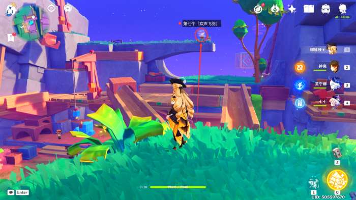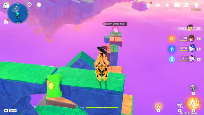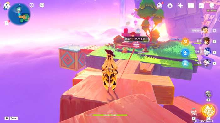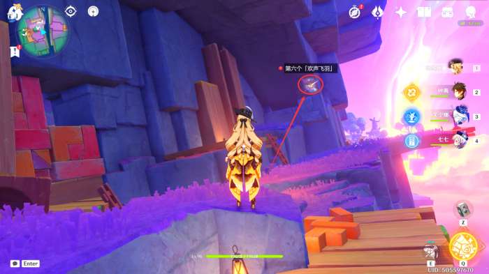 在此处的悬浮小岛上,可以看到第三个「欢声飞羽」(直接过去触碰即可)