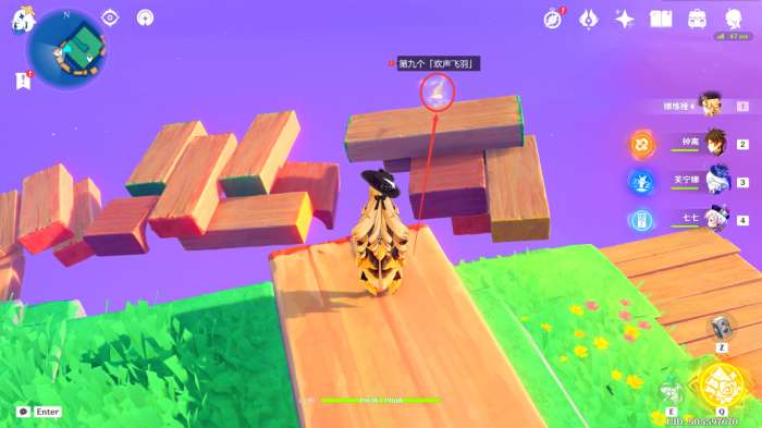 在此处的悬浮积木上,可以看到第九个「欢声飞羽」(直接飞过去触碰即可)