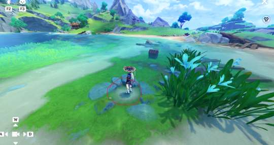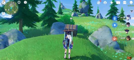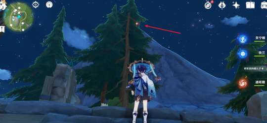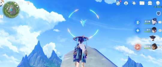 来到如图所示山顶,原有有个神瞳,再次来到这里(可以下线后再上)后有一个光标,触碰光标后按照指引,通过风圈来到爪状的石头上,获得宝箱。