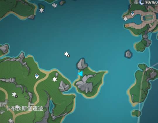 然后走到镜头对着的山下,如第三张图所示,来到一个像是鱼状的浅滩,然后站到眼睛的部位,如果没出现原地跳一跳会出现宝箱。