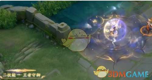 2、二技能·王者守御:仙君汇聚周遭雷霆,暗金法阵铭刻地面,阴阳二气缔结护盾,环绕其身。